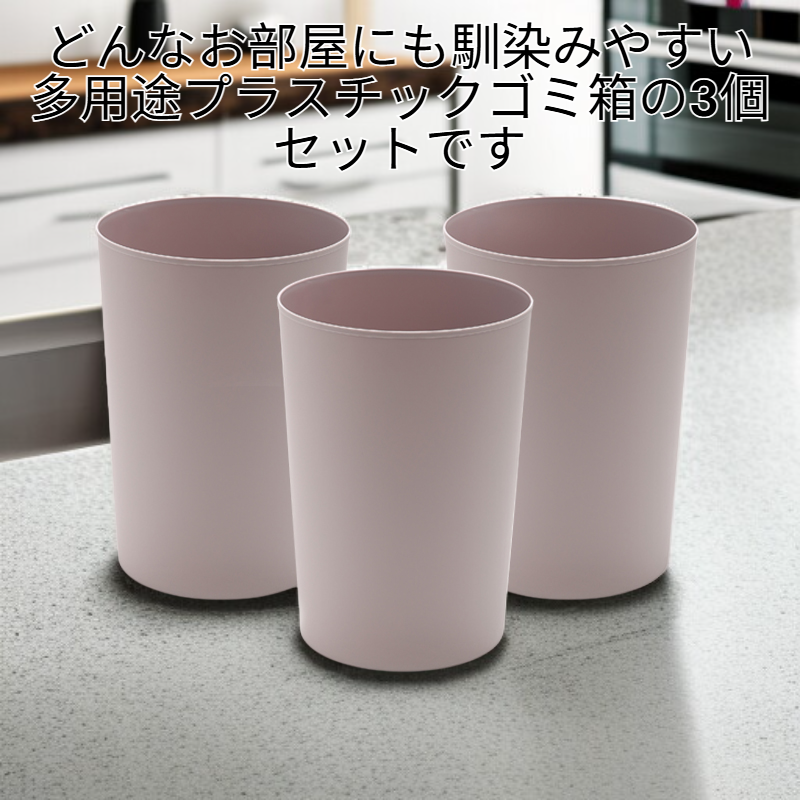 多用途家庭用プラスチックゴミ箱3個セット(蓋なし)
