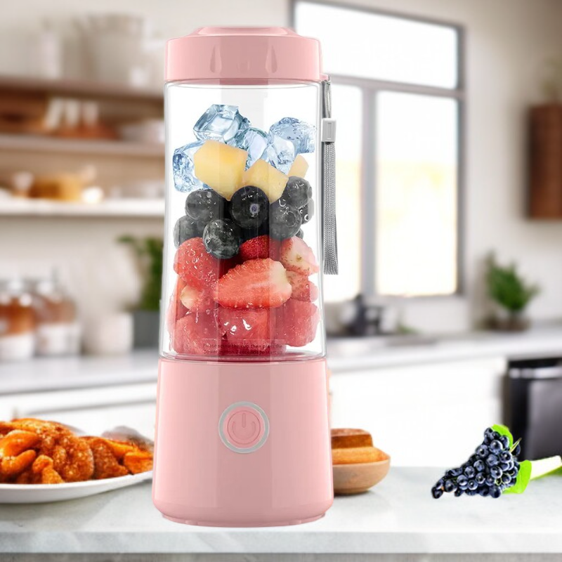 携帯型ジューサー 350ml 電動ブレンダー スムージー・シェイク対応 ミニサイズ 4枚刃(ピンク/グリーン)