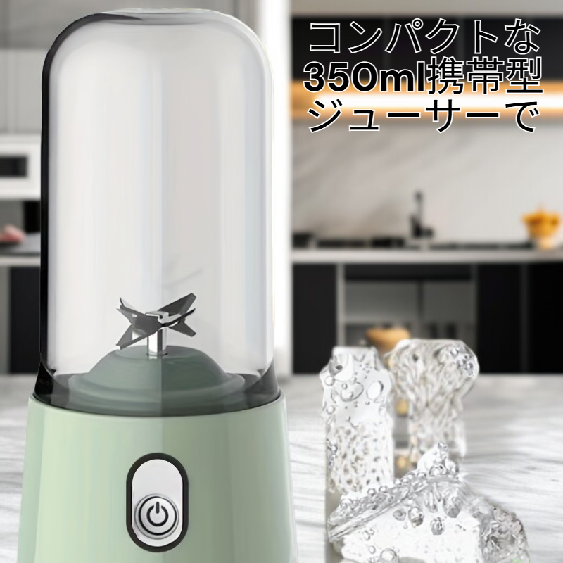 携帯型ジューサー 350ml 電動ブレンダー スムージー・シェイク対応 ミニサイズ 4枚刃(ピンク/グリーン)